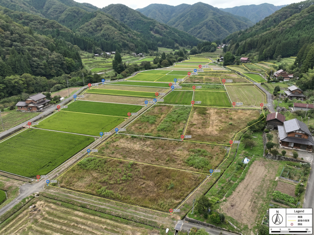 相続や売却で土地の場所がわからない時、高高度ドローンとGISで位置を特定。