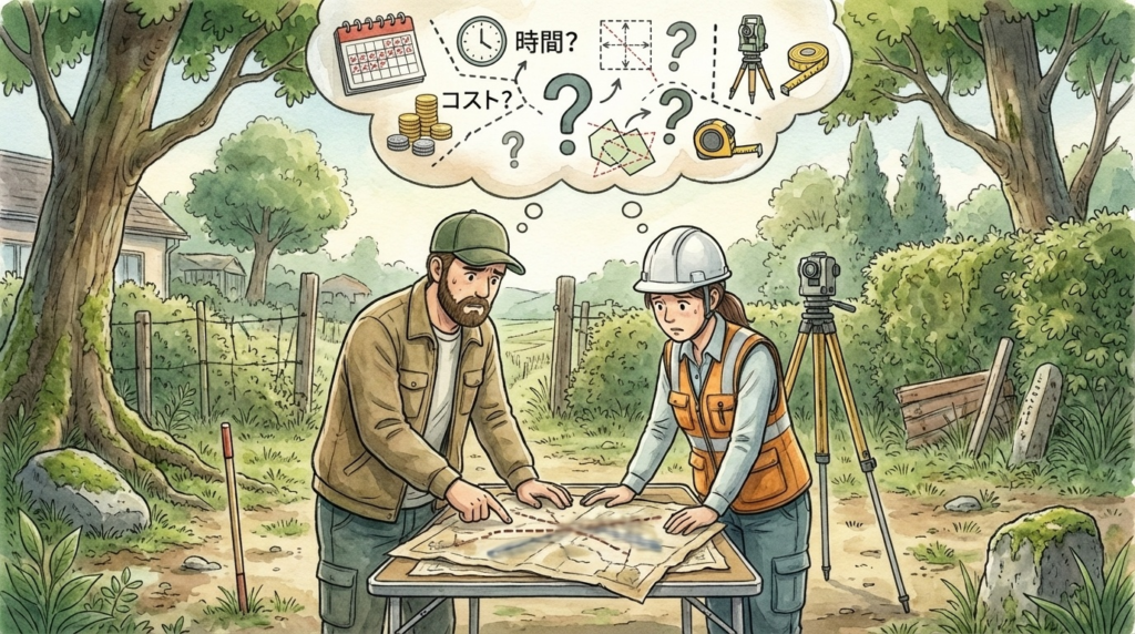 - 土地の境界を正確に計測し、将来のトラブルを防ぎたい
